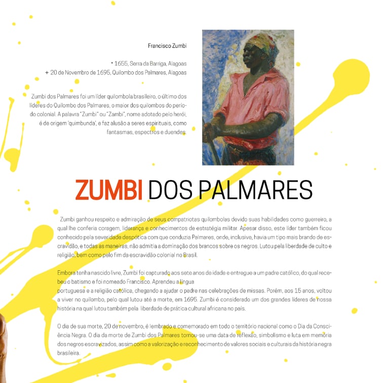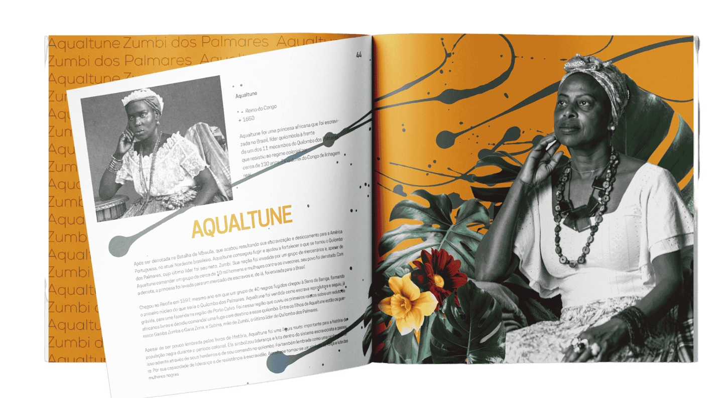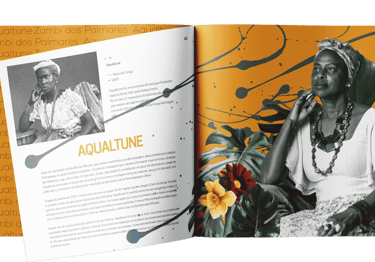 O conteúdo abrange um vasto espectro de personalidades – de figuras históricas como Zumbi dos Palmares a ícones contemporâneos como Tim Maia e Emicida – demonstrando a riqueza da contribuição afro-brasileira. A diagramação foi concebida para honrar a força de cada história, utilizando cores e layouts que garantem o máximo de impacto visual e clareza de leitura.
